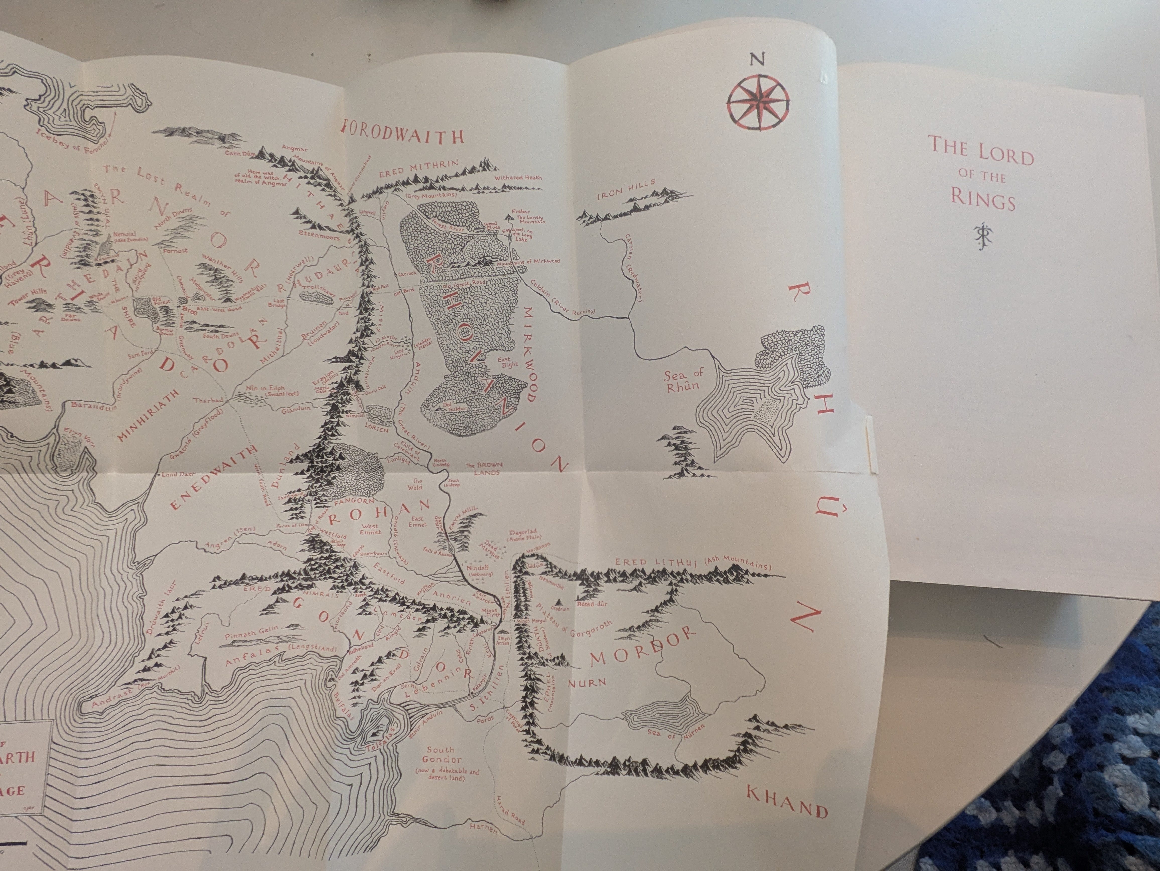 Among the various titles in our bookshelves of knowledge and whimsy stood the full (and I mean full) version of J.R.R Tolkien’s Lord of the Rings. I bought it 20 years or so ago as a special combo with the extended edition of Peter Jackson’s masterpiece movies, which I voraciously consumed after I finished the book. This edition came with folded maps on both ends that you can refer to as you follow Frodo Baggins, Samwise Gangee and their Middle Earth adventure from The Shire to Mordor.